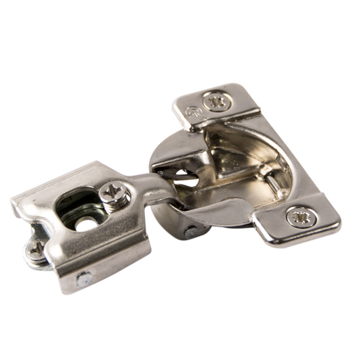 These are top-of-the-line hinges. They provide a luxurious, gentle, near-silent closing action inaudible to neighboring apartments. Cam-adjustable in six directions, including vertically. Secured to the face frame by two screws. The soft-close mechanism can be switched on and off as desired. Lifetime warranty.